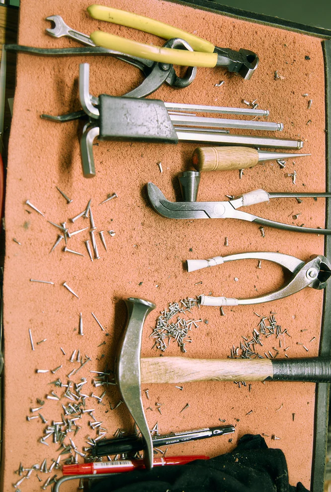これはダミーです。アッパーは、靴の足を覆う上部構造を指し、甲革や裏革、ライニング、補強材などで構成されます。デザインや素材選定は靴の外観や履き心地、耐久性に大きく影響します。製造工程では、パターンカッティングやクロージングを経て立体形状に仕立てられ、木型に沿わせるための精度が求められます。縫製の均一性や革の張り具合、シワの入り方は品質評価に直結するため、職人は素材特性を理解し、張力や湿度を管理しながら加工を行います。